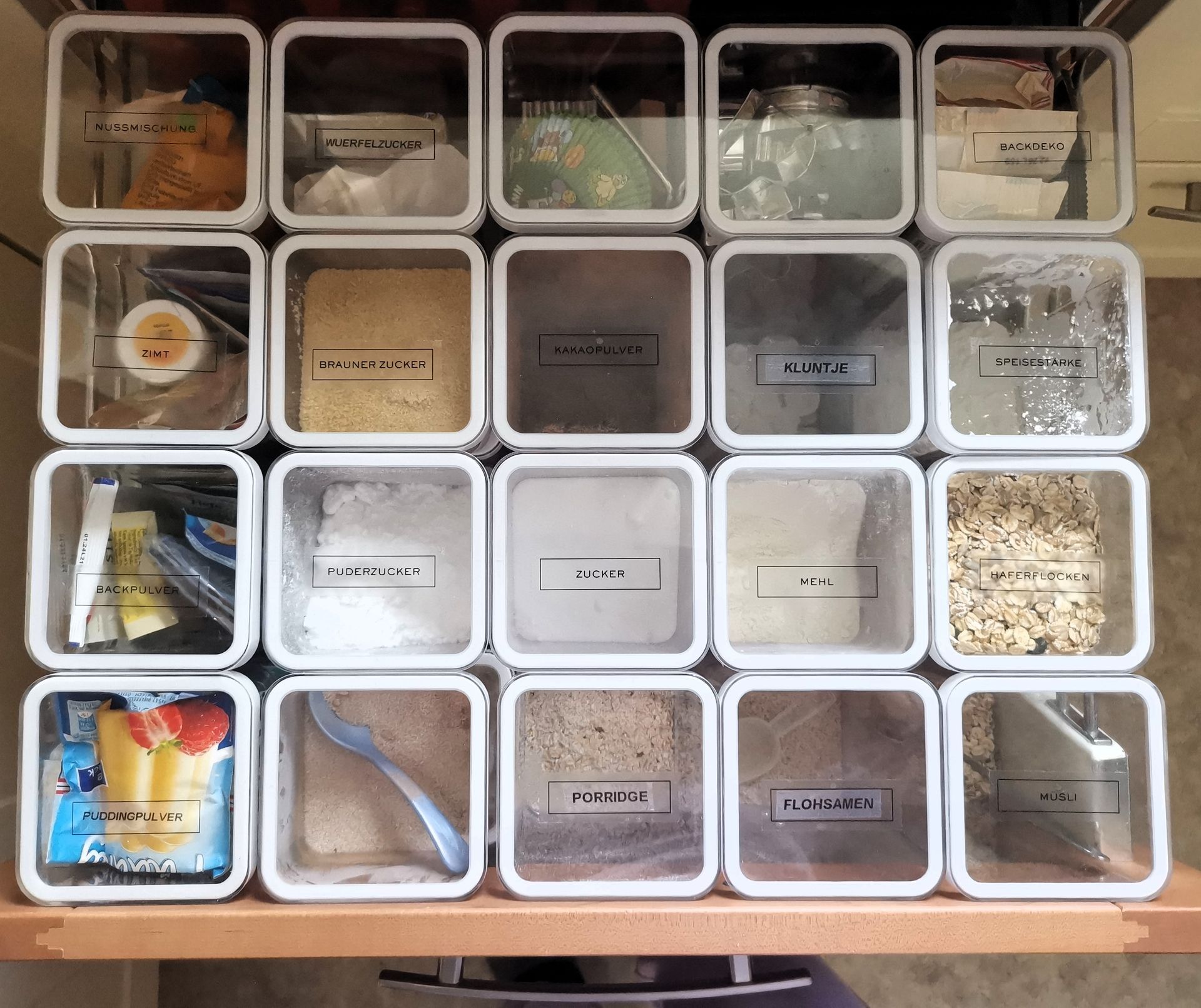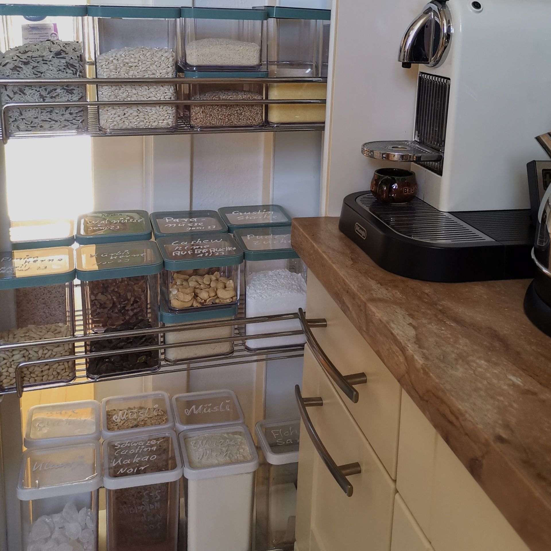 Die Umstellung der Vorratshaltung von Originalverpackungen auf beschriftete Dosen schafft einen schnellen Überblick und man kann gleich auf das Gesuchte zugreifen, ohne dass einem alles mögliche entgegen fällt. Nach anfänglichen Bedenken bin ich jetzt total begeistert.